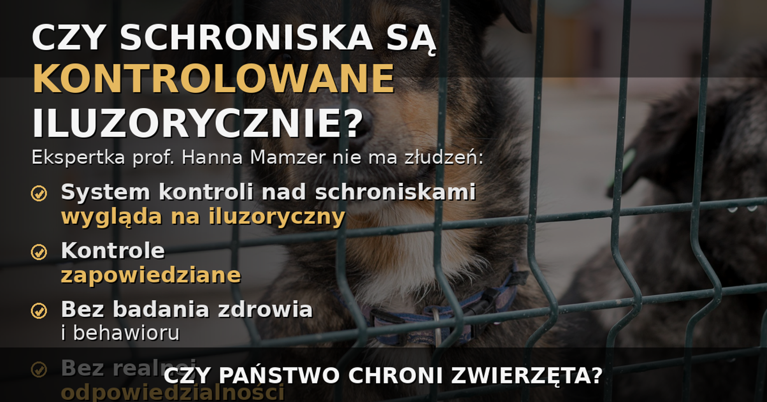 Zdaniem Mamzer kontrole powinny obejmować też stan behawioralny zwierząt, czyli ich zachowanie. – Kontrola, która wygląda w ten sposób, że urzędnik wyższego szczebla, np. wicewojewoda, chodzi po schronisku, nic nie daje, chyba, że ma on wiedzę z zakresu behawioru zwierząt i jest w stanie ocenić ich zachowanie oraz to, co ono oznacza – powiedziała.