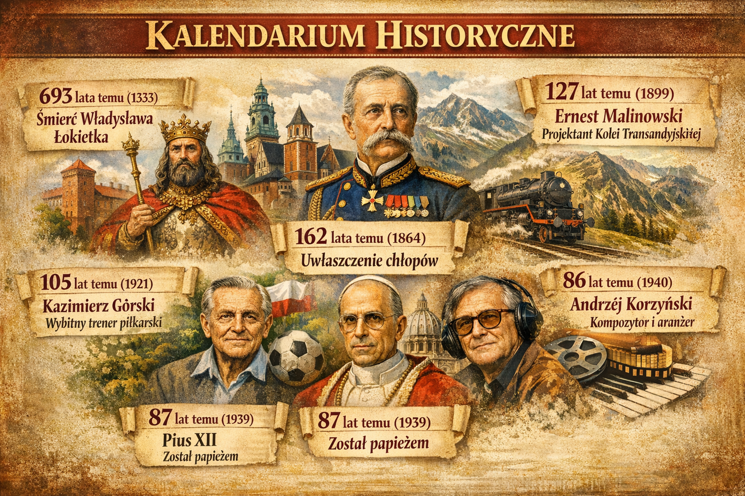 105 lat temu (1921 r.) we Lwowie urodził się Kazimierz Górski, piłkarz, trener; w latach 1970–1976 selekcjoner reprezentacji Polski; prowadzona przez niego drużyna narodowa zajęła trzecie miejsce na mistrzostwach świata w RFN w 1974 r., zdobyła złoty medal olimpijski w Monachium (1972) oraz srebrny na igrzyskach w Montrealu (1976); w latach 1991–1995 prezes PZPN. Zmarł w 2006 r.;