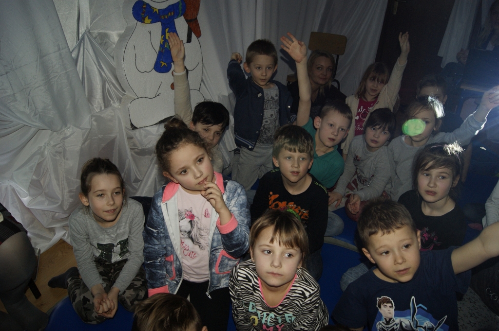 Tematyka zimowa zgodna z porą roku, wzbogacona została odpowiednią scenografią. Wysłuchaniu baśni towarzyszyły zagadki śpiewane i multimedialne, których celem było ocenienie stopnia zrozumienia przez dzieci wysłuchanego tekstu.