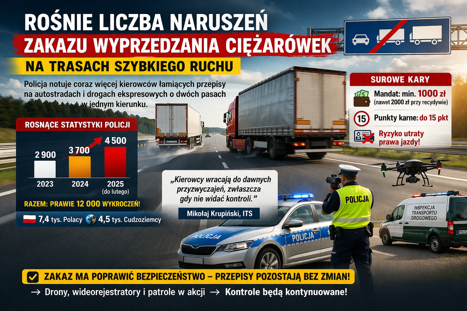 Bez tego zakaz wyprzedzania ciężarówek może pozostać jedynie zapisem w kodeksie, który nie przekłada się na realną poprawę bezpieczeństwa na drogach szybkiego ruchu.