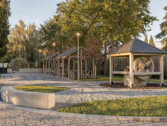 Jednak zanim na dobre ruszą prace w centrum, pierwsze zmiany zobaczymy w innym miejscu – przy ośrodku zdrowia. To przestrzeń codzienna, użytkowa, a jednocześnie zaniedbana. Wkrótce ma się zazielenić, pojawią się nowe ławki, stoliki, donice i lampy solarne. Co ważne, teren zostanie połączony z błoniami nad Pilicą, tworząc spójną, przyjazną przestrzeń dla mieszkańców.