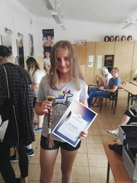 Wielkie serce okazało 13 uczennic z klas 0 – 7, które oddały długo zapuszczane i pielęgnowane włosy na peruki dla chorych dzieci i w ten sposób bardzo szlachetnie rozpoczęło wakacje.