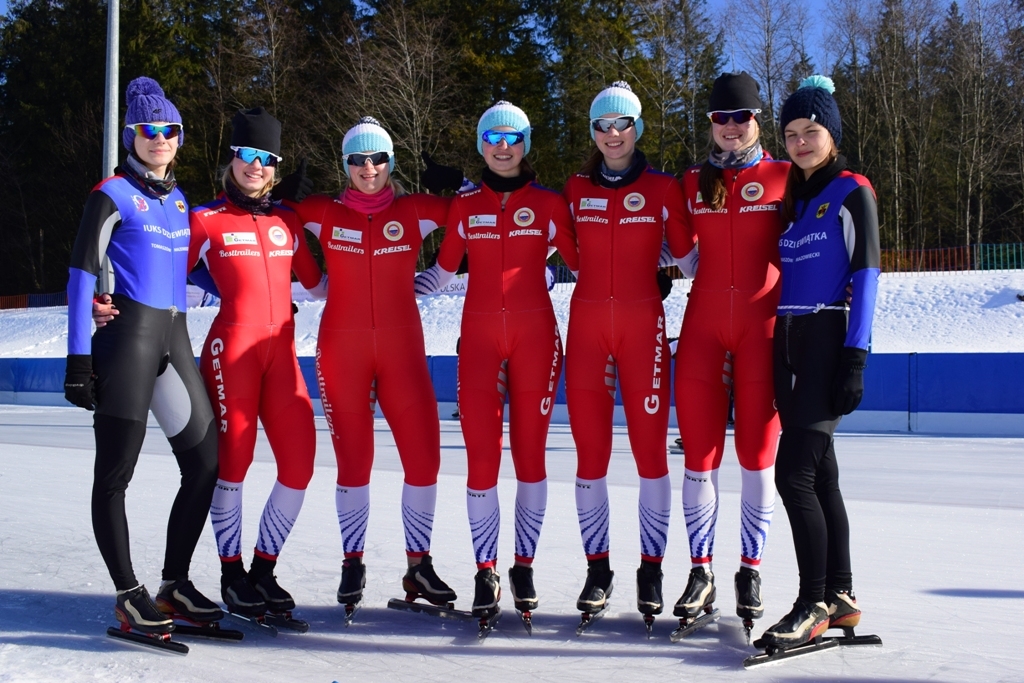 Dzisiaj w kolejny dzień zmagań juniorów na torze w Zakopanem. Karolina Bosiek liderka Pucharu Świata Juniorów na dystansie 3000m nie wystartowała w drugim dniu zawodów. Wirus grupy jej nie oszczędził .Godnie zastąpiły ją jej koleżanki klubowe, które nie oddały rywalkom żadnego medalu w kat Juniorek młodszych. Na podium stanęły dziś w wyścigach na 1000m i 3000m Karolina Gąsecka zdobyła dwa złote medale 1;23,39; 4;30,91s;Natalia Jabrzyk 1;23.41s( nowy rekord życiowy); 4;41,42; dwa srebrne medale i Olga Kaczmarek dwa brązowe medale 1;25,09s (nowy rekord życiowy) 4;48,25s . Takie same kolory medali zawodniczki KS Pilica dorzuciły jeszcze w punktacji wielobojowej Juniorek B.