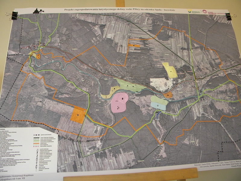 Studenci podczas dwudniowego pobytu zwiedzali naszą gminę i prowadzili obserwacje pod kątem opracowania koncepcji zagospodarowania turystycznego doliny Pilicy, na odcinku Spała – Inowłódz ze szczególnym zwróceniem uwagi na wykorzystanie terenów przy moście w Spale i OSIR w Inowłodzu.