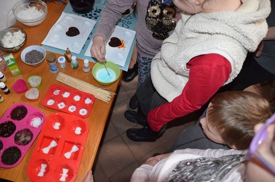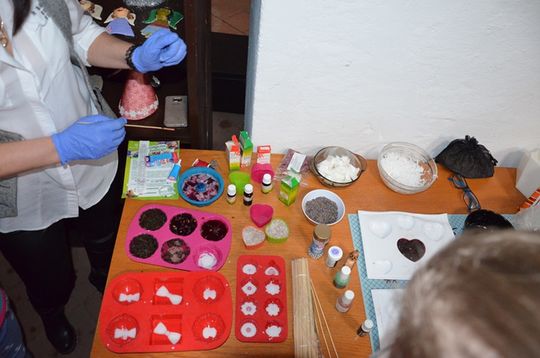 Po zastygnięciu masy mydlanej powstały piękne mydełka w kształcie serduszek ,czekoladek , czy ciasteczek, (mniam, palce lizać!) które można było wyjąć z foremek i zapakować. Gotowe, zapakowane mydełka, każdy z uczestników mógł zabrać ze sobą do domu. Natomiast woń pachnideł długo jeszcze będzie się roznosiła po zamku. Warsztaty były wyśmienitą frajdą dla dzieciaków, a mydełka mogą być uroczymi upominki dla najbliższych na Walentynki.