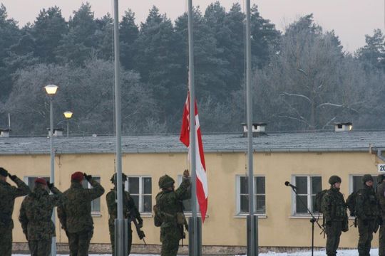 Wspólne szkolenie rozpoczęto uroczystą zbiórką podczas której odegrano hymny narodowe oraz wciągnięto flagi narodowe na maszt.
