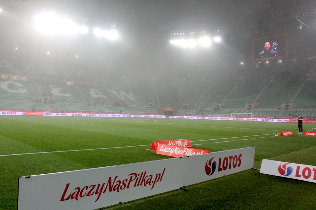 Stadion Wrocław przywitał nas chłodem i dość gęstą mgłą.