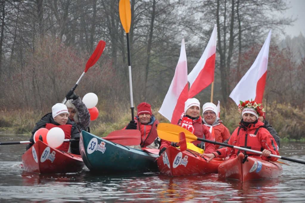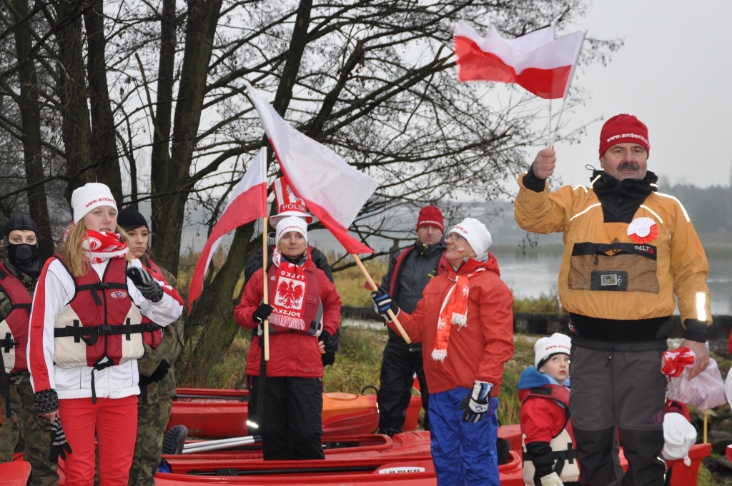 Już po raz szósty 11-go listopada Klub Sportowy AMBER zorganizował świąteczne morsowanie, a po nim spływ kajakowy. Po uroczystym złożeniu kwiatów pod Pomnikiem Miejsca Straceń przy ul. Strzeleckiej i pod Pomnikiem Żołnierzy A.K. w Treście z honorową asystą SZ Strzelec OSW ruszyła prawdziwa biało-czerwona parada kajakowa flag, balonów, kotylionów, kapeluszy, chust w narodowych barwach. W ten piękny sposób tak jak umiemy najlepiej podziękowaliśmy naszym przodkom za ich poświęcenie w imię walki o niepodległość.