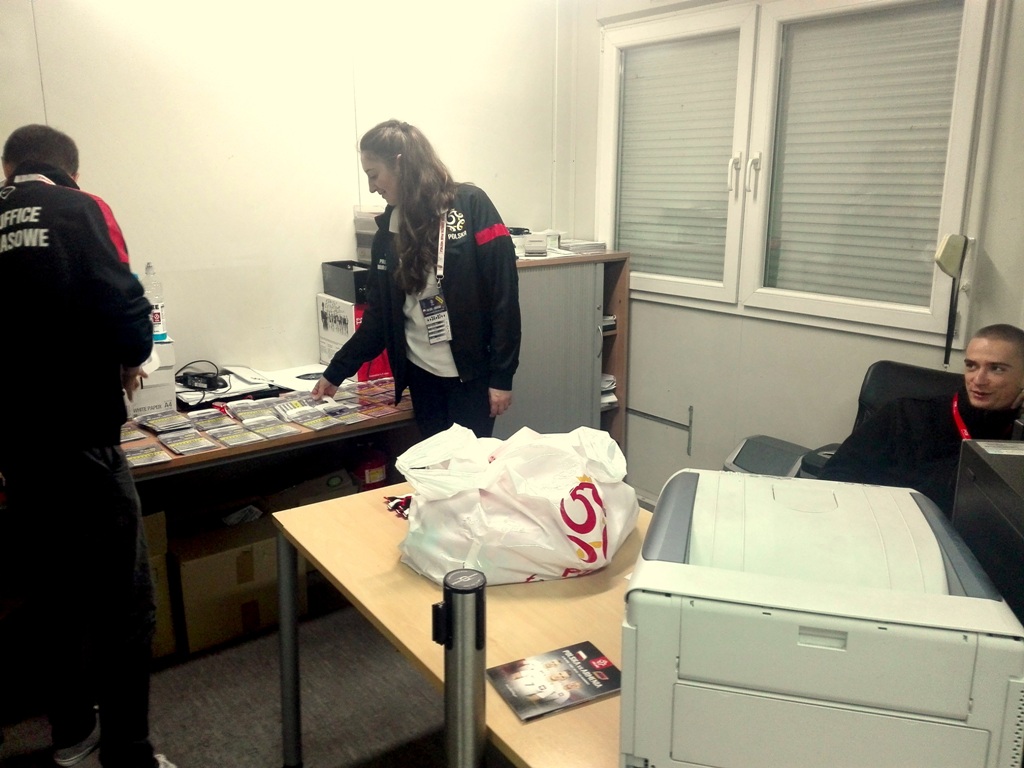 Po swoją akredytację musieliśmy dotrzeć pod bramę numer osiem. Pracownicy biura obsługi mediów byli bardzo mili i szybko odnaleźli nasz „papierek”.