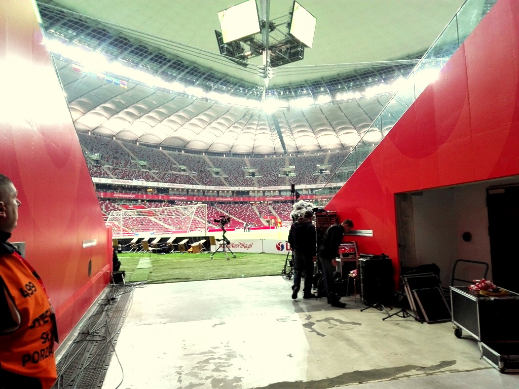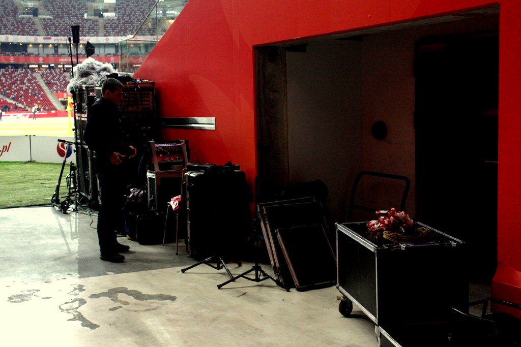 Kolejnym etapem podróży, była ukryta winda, którą miałem dotrzeć do pomieszczenia przeznaczonego dla mediów. Po 25 minutach udało nam się ja znaleźć. Przy okazji zwiedziłem sobie podziemie obiektu – zrobiło ono na mnie olbrzymie wrażenie. Drugą sprawą jest fakt że stadion w tej części to istny labirynt. Mnóstwo korytarzy, kilka wind, parking. Jest na co popatrzeć.