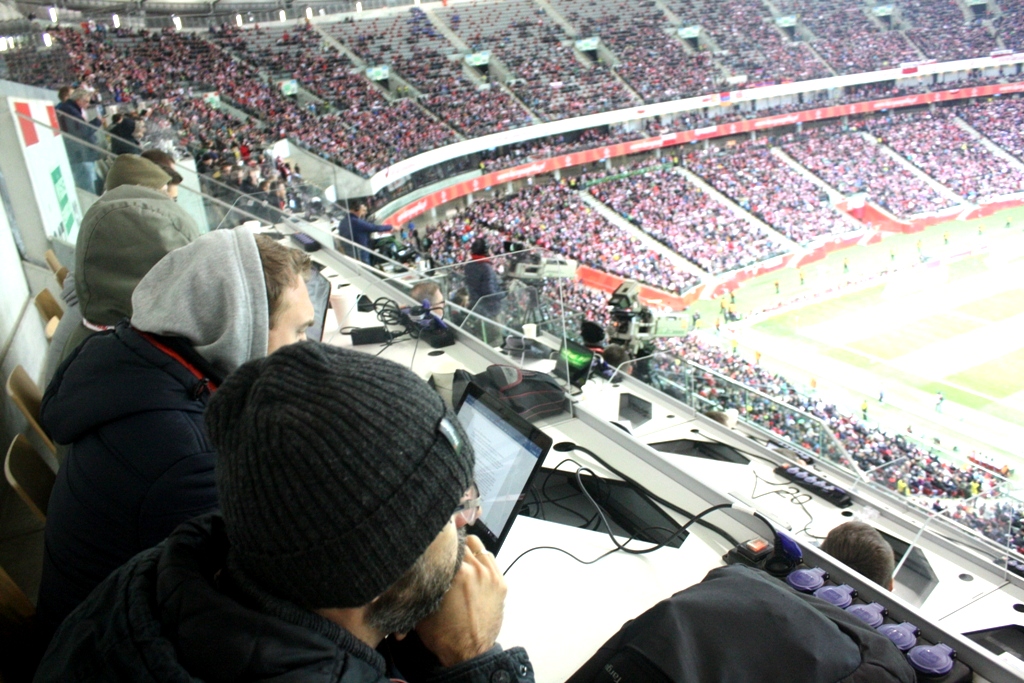 Po odśpiewaniu przez kibiców hymnu usłyszeliśmy pierwszy gwizdek. Na początku u większości Panów redaktorów panował totalny luz. Tu Lewy miał szansę, tu za chwilę mija się z piłką Teodorczyk – widać przewagę Polaków. Niestety widać też świetne poruszanie się po boisku defensywy Armenii. Do przerwy 0:0, choć od 30 minuty gramy w przewadze. Luzu wśród mediów już nie było.