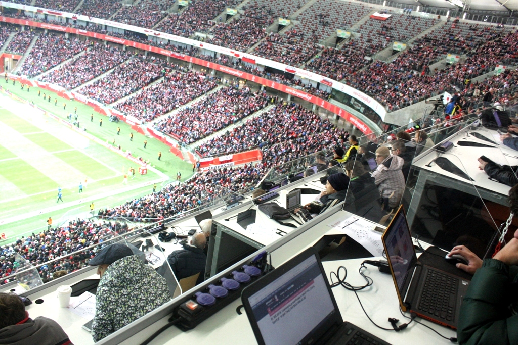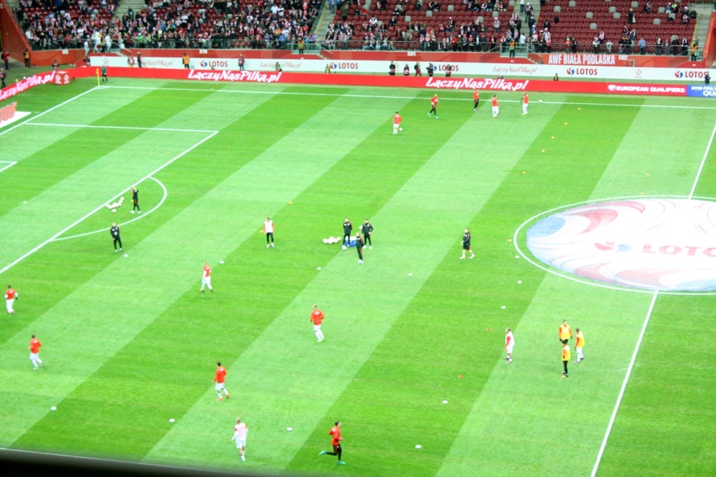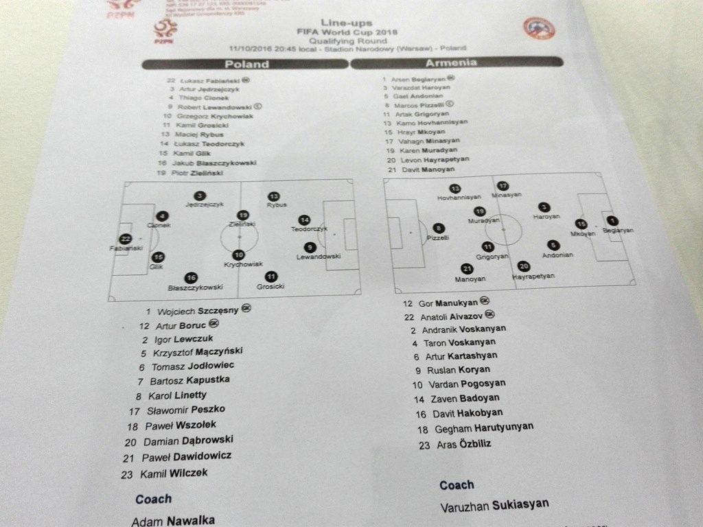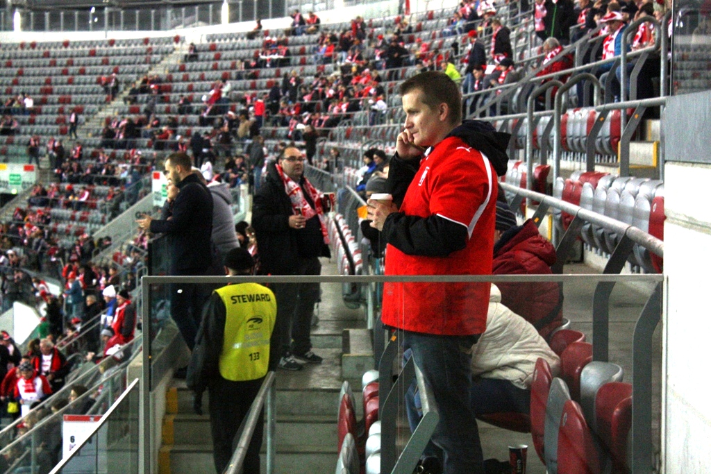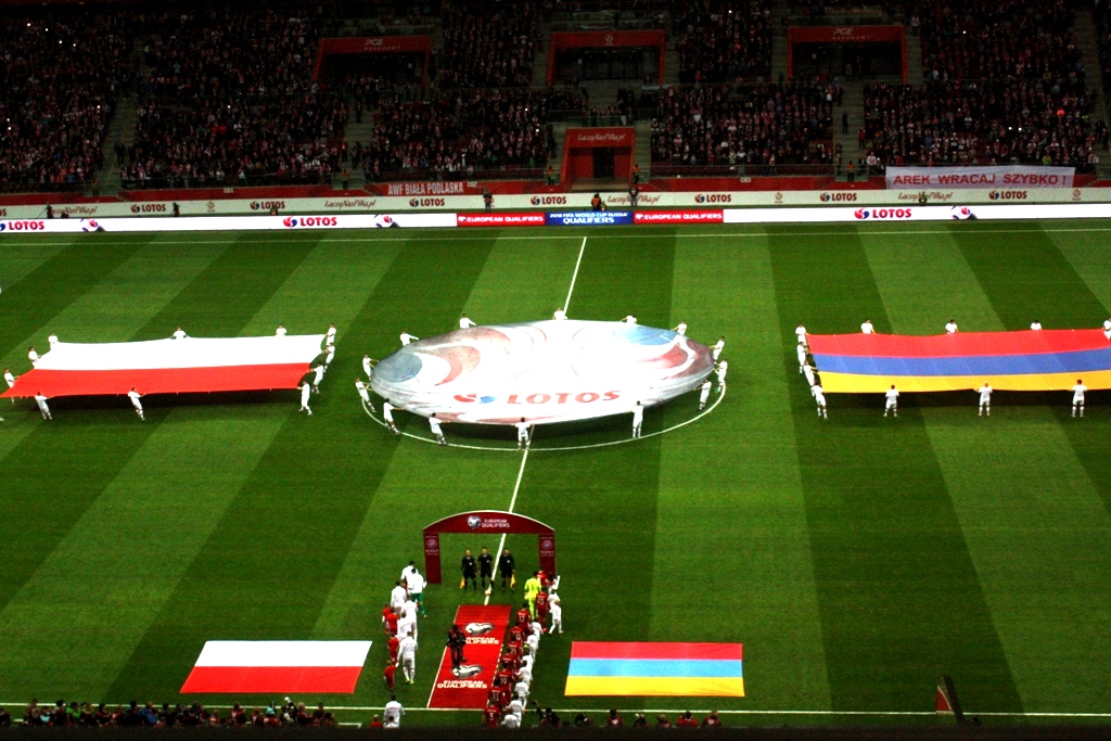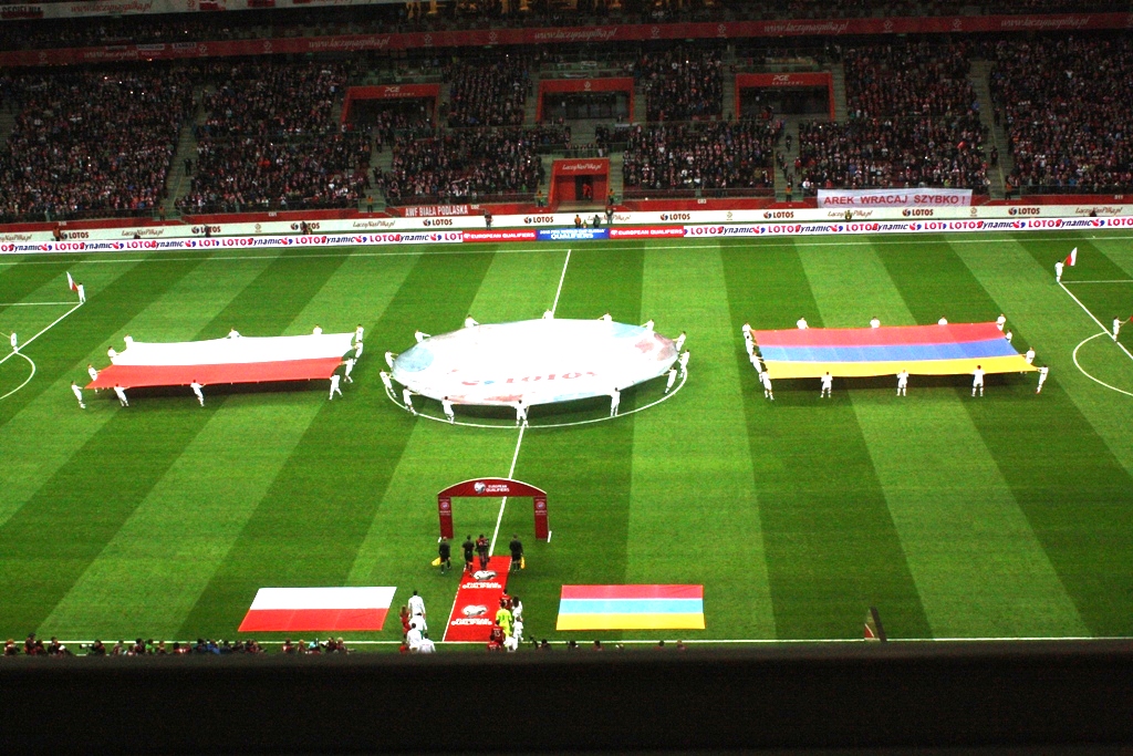 Po wypiciu gorącej herbaty, zjedzeniu jednego rogala i skosztowaniu pasztecika– udałem się na miejsce, z którego miałem obserwować mecz. W kuluarach dziennikarze mocno pewni - Polska strzeli trzy, cztery gole. Ja taki pewny nie byłem. Mój typowany wynik to 1:0 dla naszych. Przez chwilę u niektórych „ekspertów” – pojawił się lekko szyderczy uśmiech, a i spojrzenie w moją stronę w tym momencie dość lekceważące. Niewielu jednak wpadł pomysł do głowy pokroju, Ormian walczących o punkty, a pojedynek nie jest spotkaniem towarzyskim, ale eliminacjami do MŚ.