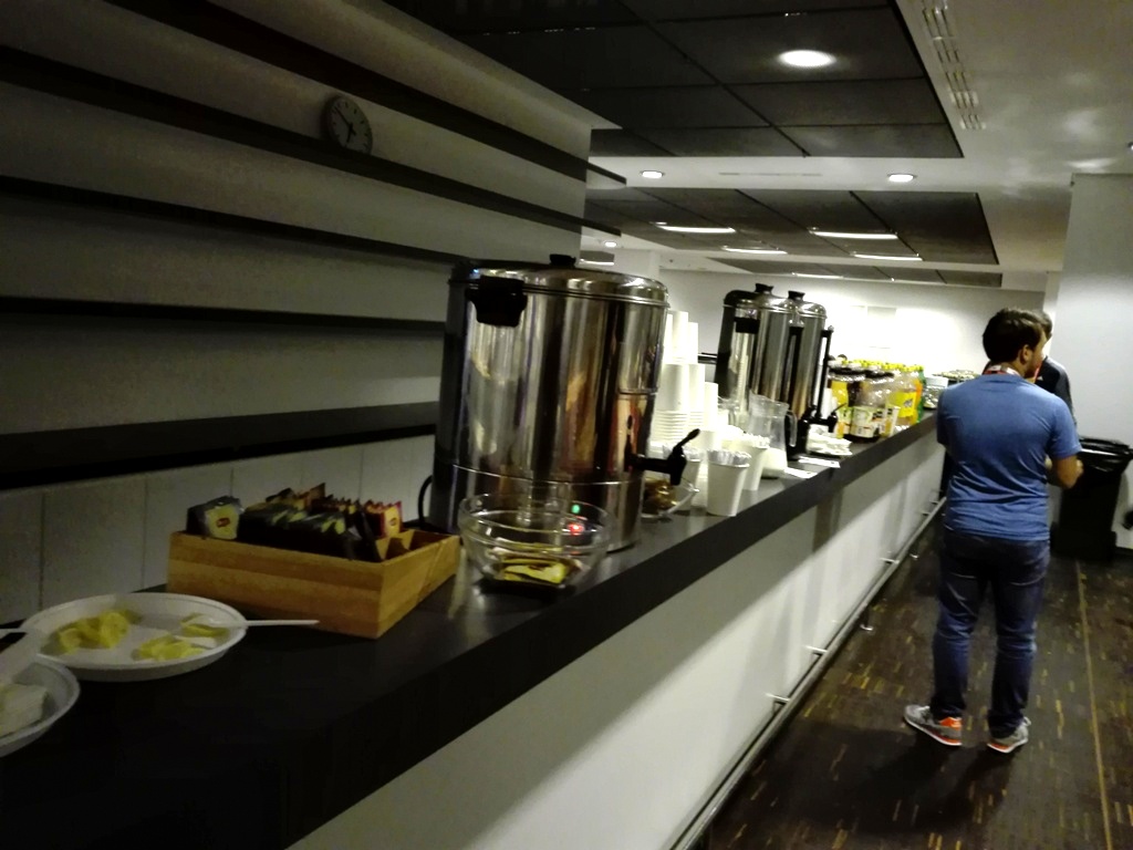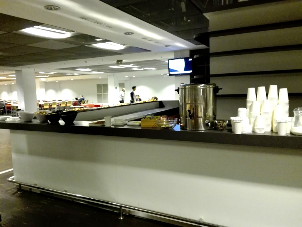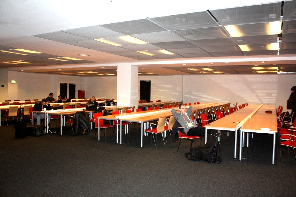 W środkowej części centrum przygotowano poczęstunek tj. krakersy, chipsy, rogale francuskie, oraz paszteciki ze szpinakiem. Dostępne były także napoje gazowane, kawa i herbata. Wszystkiego dość sporo, gdyż dziennikarzy było dużo. Przepychu za pieniądze podatników, jednak nie było - co mogło się podobać.