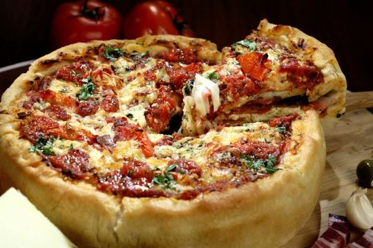 Recepturę pizzy przywieźli do Stanów Zjednoczonych imigranci z południowych Włoch. Pierwsza amerykańska pizzeria powstała na początku XX wieku w Nowym Jorku, dając początek nowemu stylowi pizzy. Silnie wzorowana na neapolitańskim oryginale nowojorska odmiana cechuje się cienkim ciastem o chrupiących brzegach i elastycznym spodzie. Ta ostatnia cecha pozwala złożyć kawałek na pół, co czyni z nowojorskiej pizzy idealny street food. Drugim popularnym rodzajem amerykańskiej pizzy jest odmiana z Chicago, a zwłaszcza wersja zwana deep-dish. Pizzę tę piecze się w głębokim naczyniu, co sprawia, że charakteryzuje ją wysokie ciasto, które wypełnia się gęstym sosem pomidorowym, serem i mięsem.