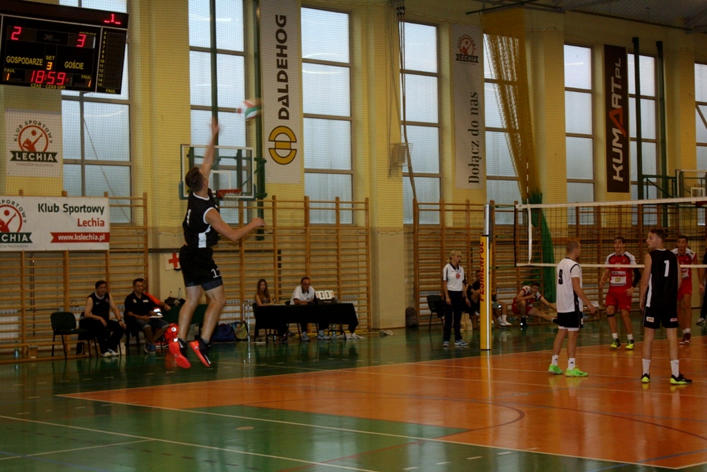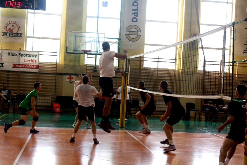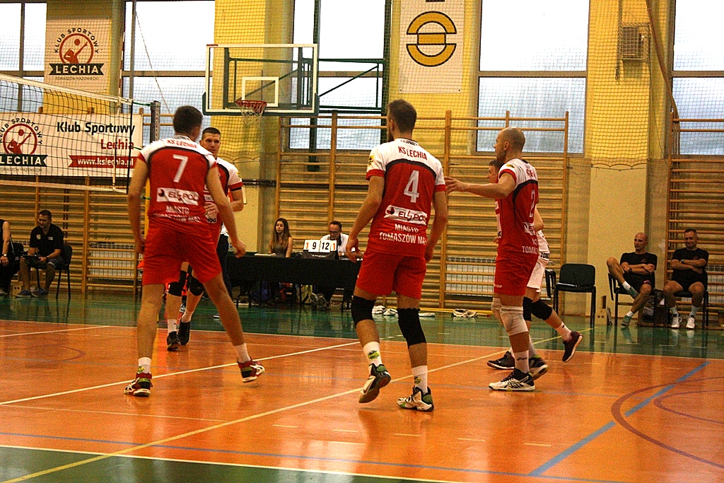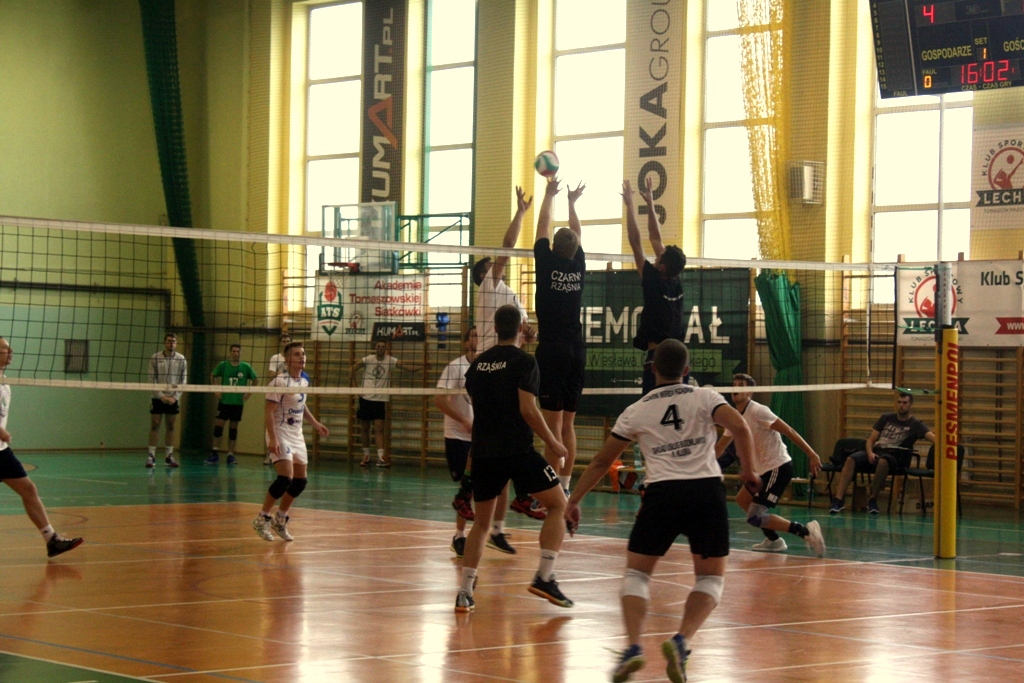 Zespół z Tomaszowa turniej rozpoczął od pojedynku z Czarnymi Rząśnia. Pierwszy set mocno wyrównany i zakończony pozytywnym wynikiem dla naszej drużyny 25:23. W drugiej odsłonie Lechia ponownie okazała się lepsza. Podopieczni Tomasza Migały nie czekali już na nerwową końcówkę i osiągnęli bezpieczną przewagę. Wynik 25:19. Mecz wygrany, jednak przed nami ostatni akord tej rywalizajci. Tym razem lepsi okazali się rywale wygrywając set 25:23. Mecz zakończył się zwycięstwem Lechii 2:1.