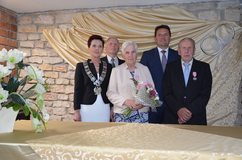 Składając gratulacje Szanownym Jubilatom podkreślił, że są wzorem godnym do naśladowania dla przyszłych pokoleń oraz pełnią szczególną rolę dla trwałości związku małżeńskiego i wartości życia rodzinnego. Życząc, aby kolejne lata wspólnego życia małżeńskiego były nieustająco radosne i szczęśliwe, aby nie brakło wzajemnej życzliwości, uśmiechu i pogody ducha na co dzień oraz by w zdrowiu i szczęściu doczekali kolejnych jubileuszy.