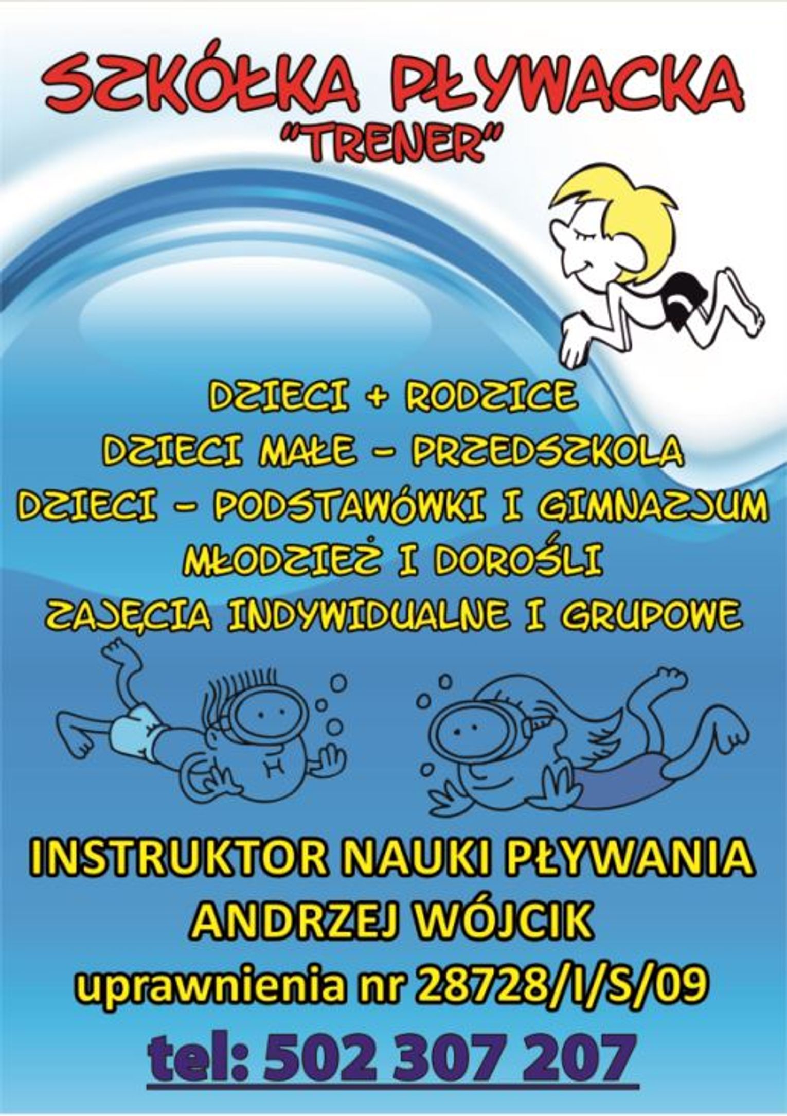 Zachęcamy do skorzystania z oferty szkółki pływania dla dzieci i dorosłych