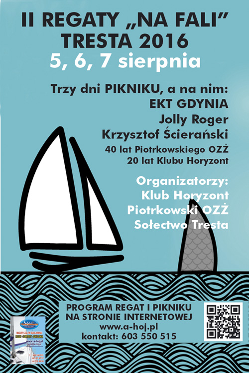 godz. 16.00 -17.00 uroczyste zakończenie regat żeglarskich – wręczenie pucharów, dyplomów oraz nagród;