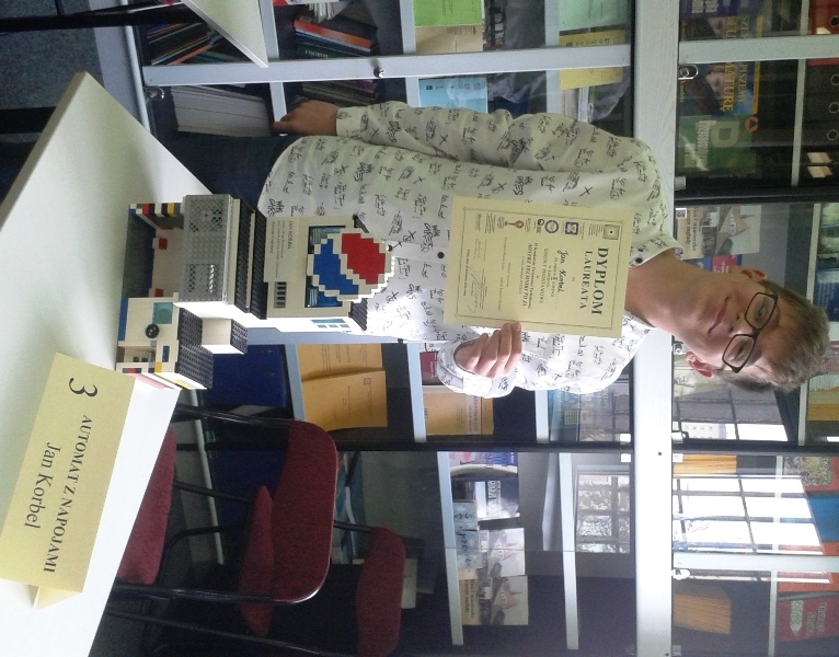Po raz pierwszy i już z sukcesem. Zdobywcą II miejsca został Jasiek Korbel – uczeń szóstej klasy szkoły w Niewiadowie przygotowywany przez nauczyciela informatyki i techniki – p. Bożenę Kosternę. Pod czujnym okiem opiekuna przygotował model maszyny do puszek z napojami. Działającą!