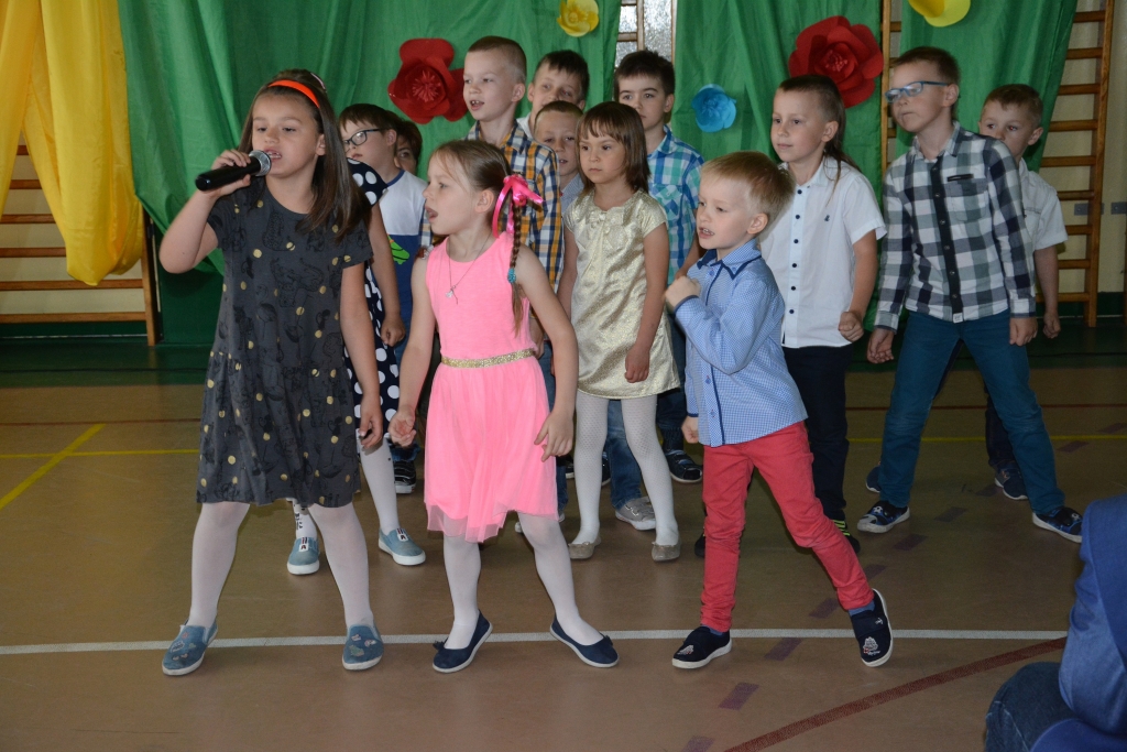 Następnie wicedyrektor szkoły, pani Lucyna Siudzińska zaprosiła wszystkich zebranych do obejrzenia części artystycznej w wykonaniu grupy „0b” pod kierunkiem pani Ewy Zielińskiej oraz wokalistów przygotowanych przez pana Marcina Sakturę.