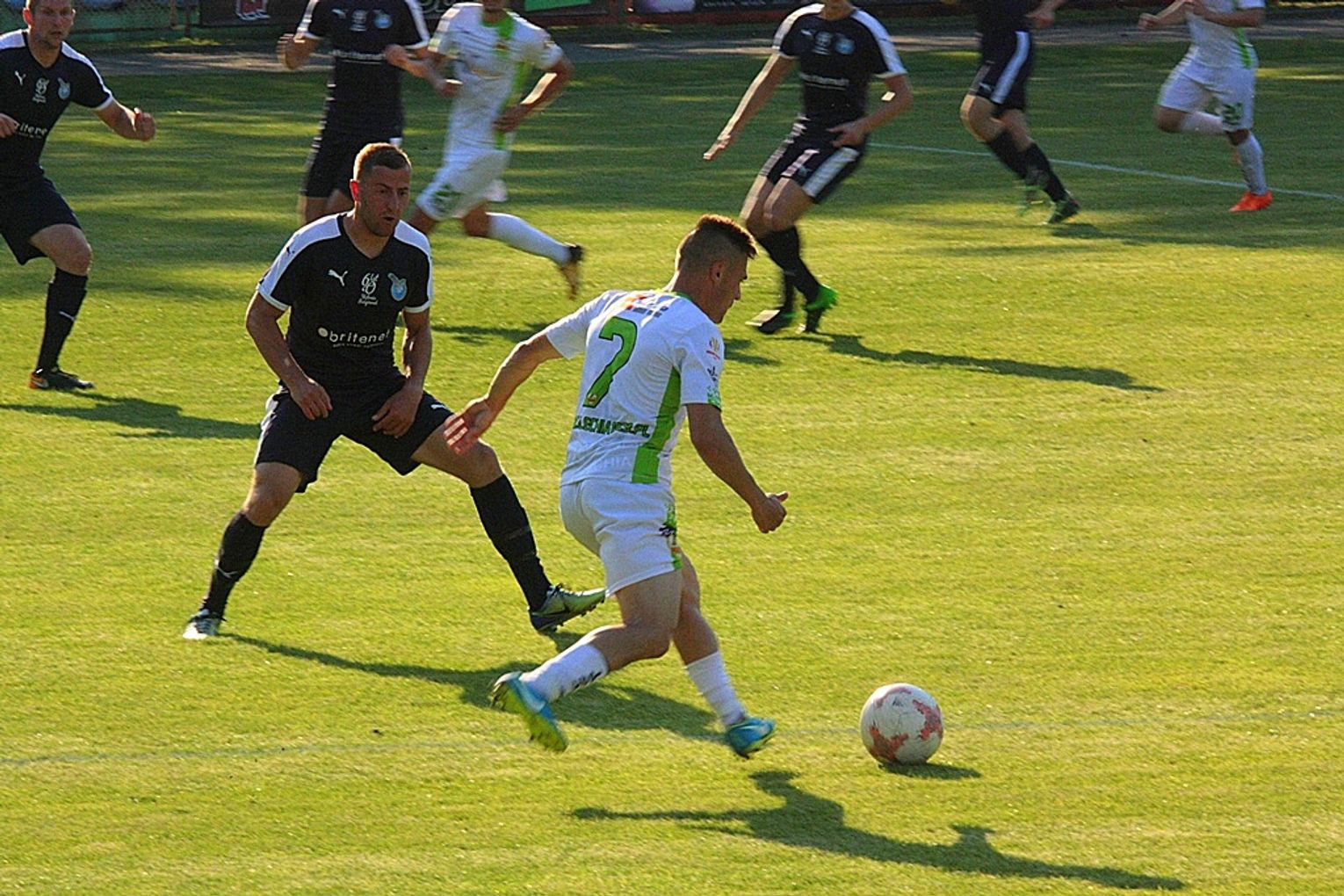 Wysoka temperatura nie sprzyjała grze. Choć Lechia miała optyczną przewagę, to na kolejnego gola czekaliśmy do 44 minuty, kiedy to Mirecki zaprezentował nam kapitalną indywidualną akcję w której minął kilku rywali. Strzał Marcina skuteczną interwencją, zablokował 18 letni bramkarz gości Józef Burta, wybijając piłkę na szósty metr. Tam próbę podjął jeden z naszych graczy, ale i ta została powstrzymana. W tym całym zamieszaniu okazji swojej nie zmarnował Dawid Kieplin, który silnym strzałem pod poprzeczkę ustalił wynik pierwszej połowy.