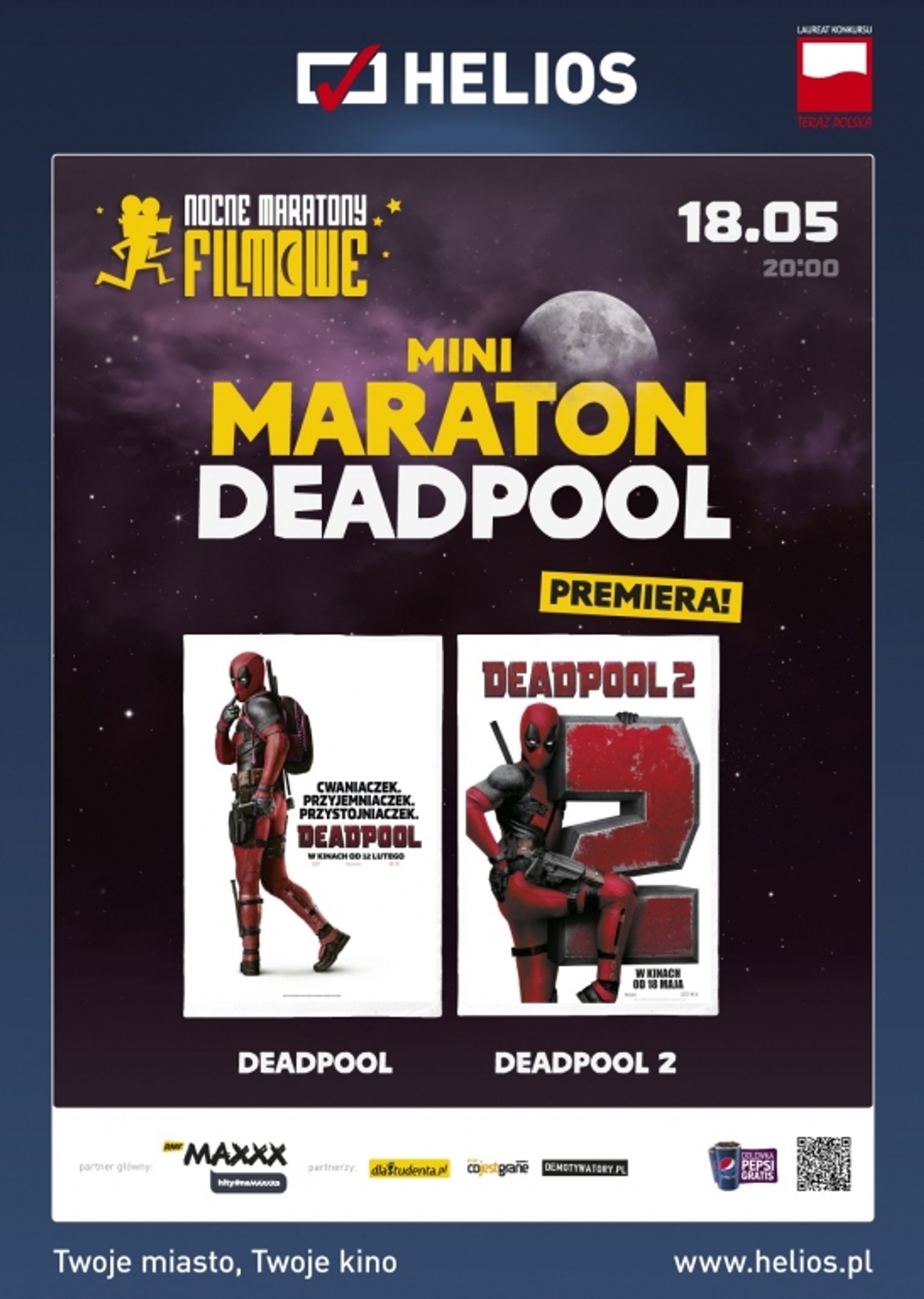 Do każdego biletu w kasie kina dołączony będzie kupon uprawniający do jednorazowej dolewki napoju w kubku (Pepsi, Mirinda, 7up, Ice Tea), sprzedawanego w barze kina Helios. Kupon ważny tylko w czasie maratonu.