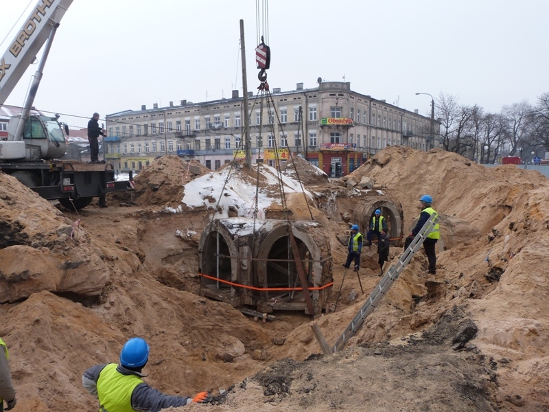 Pomimo tego ulokowanie betonowego kolosa w głębokim wykopie przebiegło pomyślnie. Główną rolę w akcji odegrał potężny dźwig, udostępniony skansenowi gratisowo (jak zawsze) przez właściciela tomaszowskiej firmy „Usługi dźwigowe Franciszek Żyłka”. Wyjątkowymi umiejętnościami wykazał się operator dźwigu – Radosław Rybak. Wyrazy wdzięczności należą się także Marii Chilińskiej – prezesowi Zarządu Zakładu Gospodarki Wodno-Kanalizacyjnej – Spółka z o.o. w Tomaszowie Maz. za cenną, bezinteresowną pomoc we wcześniejszym przygotowaniu miejsca sobotniej operacji.