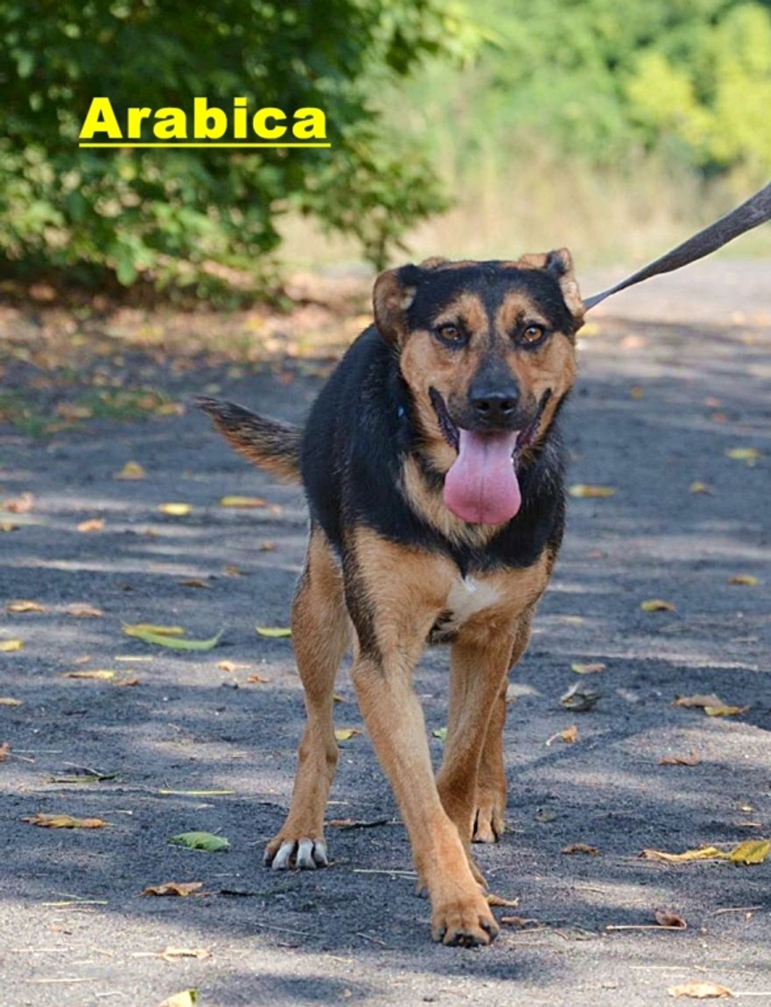 Ładnie chodzi na smyczy, bardzo lubi dzieci. Co do psów, jest grzeczna i uległa potrafi natomiast zdominować suczkę. Arabica czeka na miłość, na szansę od losu. Pomóżmy jej odzyskać wolność i wiarę w lepszy świat!