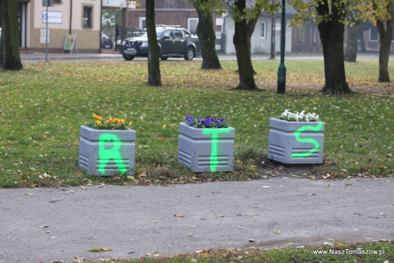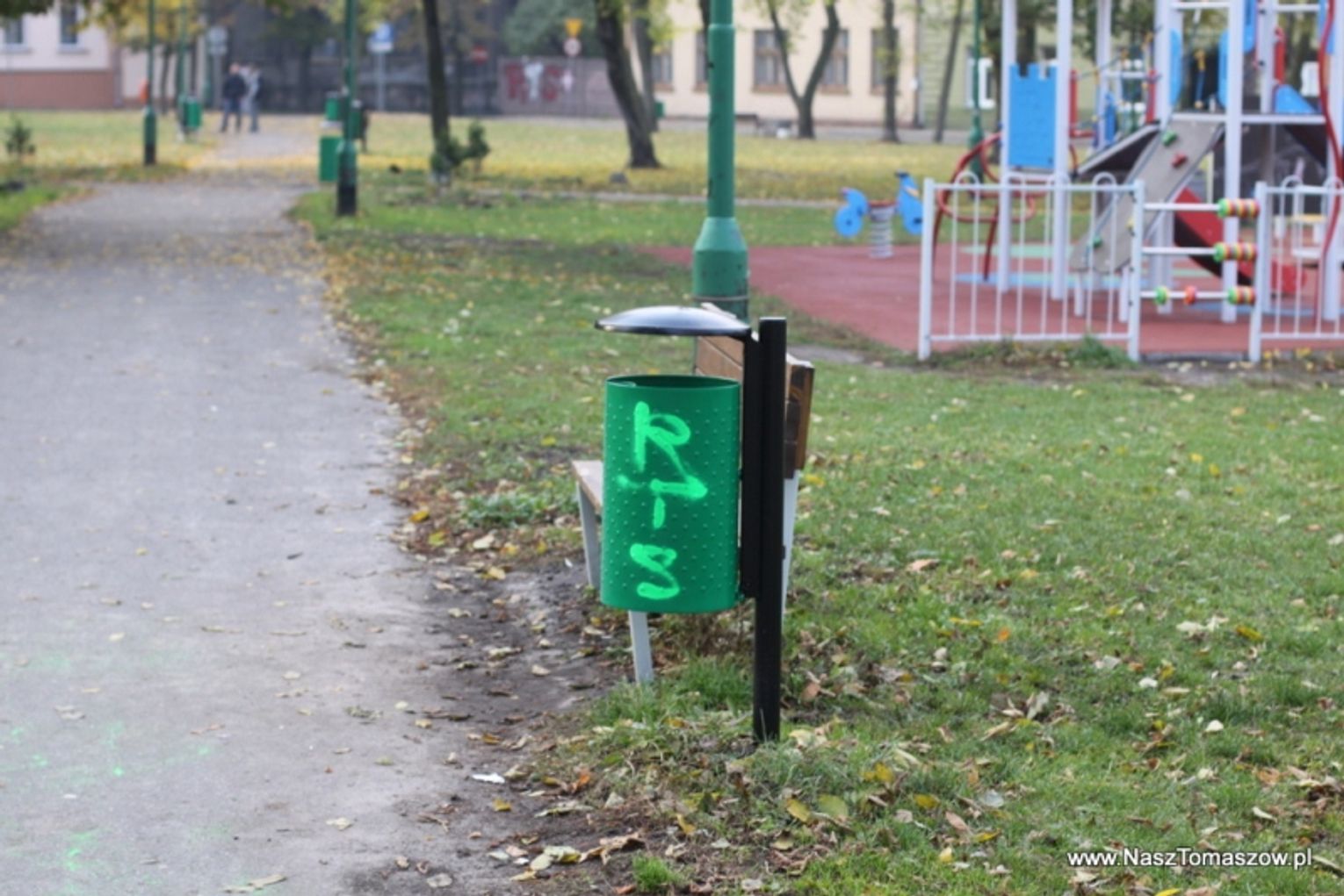 Czy miłość do ukochanej drużyny może być odwrotnie proporcjonalna do ilości posiadanego rozumu? Jak najbardziej. Fani jednej z drużyn piłkarskich udowadniają to w Tomaszowie niemal na każdym kroku. Oznaczając niczym psy teren, po ktorym się przemieszczają. Wymazane bohomazami ściany znajdują się w każdej dzielnicy, często też na świeżo odnowionych elewacjach. Ostatnio piłkarscy kibice postanowili udekorować parkowe kosze na śmieci oraz drzewa. Kosze całkiem niedawno zostały w tym miejscu odświeżone i pomalowane. Pogratulować tylko głupoty.
