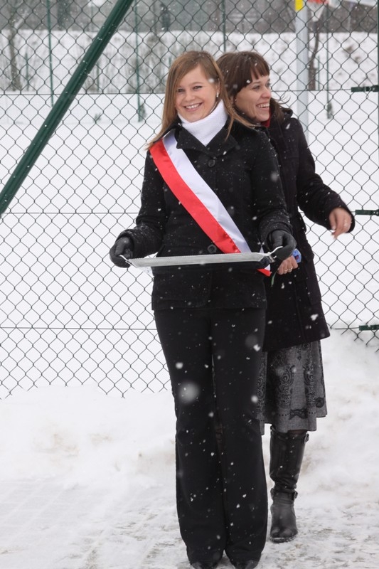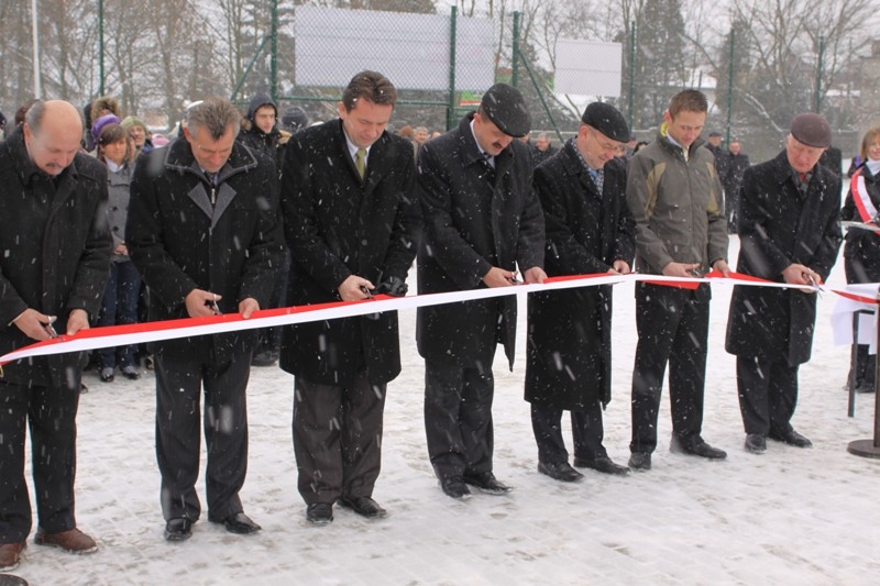 Oddano dzisiaj do użytku kolejny kompleks boisk, zbudowany w ramach rządowego Programu „Moje Boisko – Orlik 2012”. To największa i najdroższa do tej pory tego typu inwestycja w naszym powiecie. Kosztowała około 1,5 miliona złotych. Poza boiskami i kontenerem – przebieralnią zbudowano także miejsca parkingowe oraz ponad 1000 metrów kwadratowych drogi dojazdowej, spełniającej wymogi drogi pożarowej. Niestety, z uwagi na aurę, dyrekcja Ośrodka Szkolno Wychowawczego przy ulicy Majowej, zmuszona była przenieść uroczystości inauguracyjne do szkolnej sali gimnastycznej.