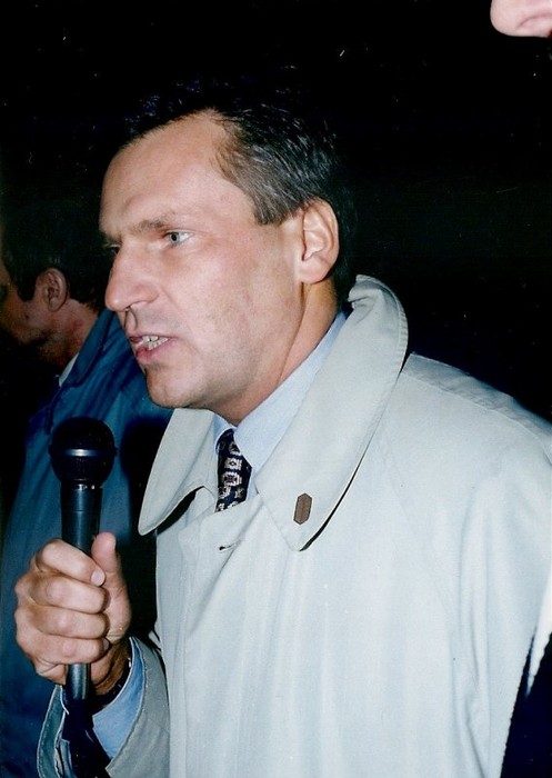 Balcerowicz? Oczywiście, że musi odejść - na zdjęciu na spotkaniu z działaczami Unii Wolności w Tomaszowie.