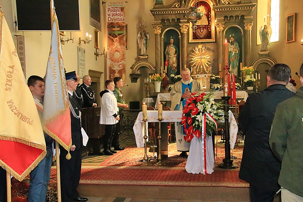 Uroczystości rozpoczęły się o godzinie 09.00 Mszą Świętą w intencji Ojczyzny w Kościele Parafialnym pw. Św. Michała Archanioła w Inowłodzu. Mszę celebrował Ksiądz Proboszcz dr Artur Szczepanik. Po mszy wszyscy uczestnicy, w biało – czerwonym pochodzie prowadzonym przez jeźdźców konnych ze Stowarzyszenia Ułanów im. Oddziału Wydzielonego Wojska Polskiego mjr. Hubala wraz z pocztami sztandarowymi oraz delegacjami instytucji, organizacji pozarządowych, stowarzyszeń, przedstawicielami lokalnego samorządu, oświaty i kultury przeszli pod płytę pamiątkową znajdującą się w parku przy OSP.