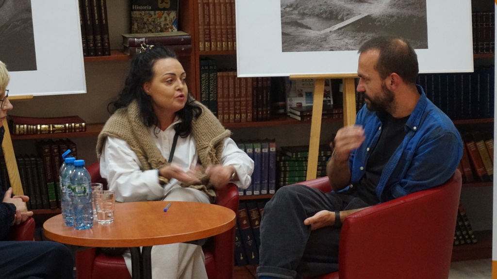 Portret autora podczas dyskusji — MBP Tomaszów