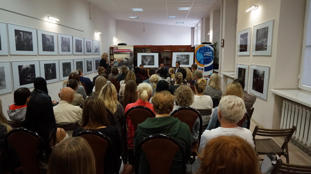 Wystawa i rozmowa — pełna sala w czytelni
