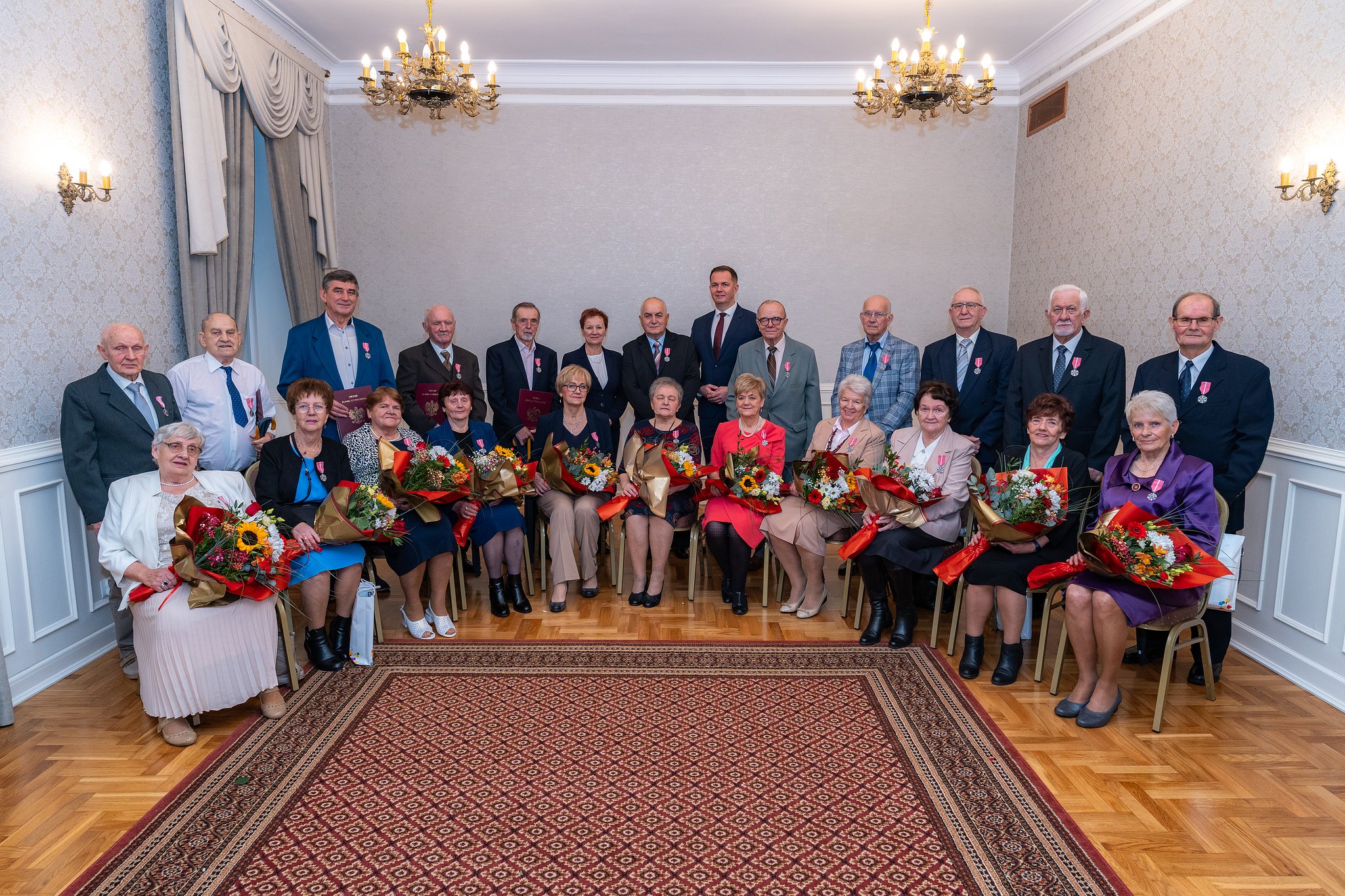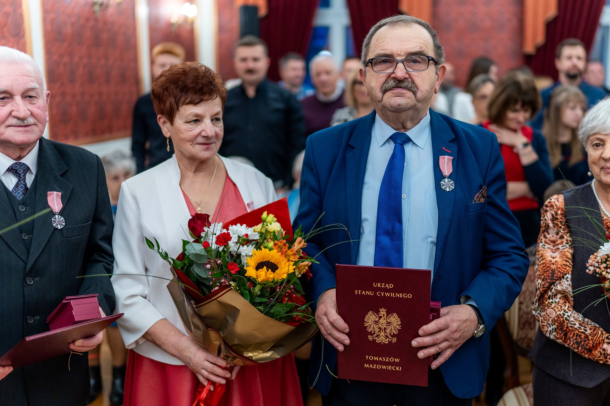 Świętowali złote, platynowe i diamentowe gody. Dwadzieścia dwie pary świętowały w piątek 21 listopada złote, platynowe i diamentowe gody w Tomaszowie Mazowieckim. Medale za Długoletnie Pożycie Małżeńskie, nadane im przez Prezydenta Rzeczpospolitej Polskiej, Jubilaci otrzymali podczas uroczystości w Urzędzie Stanu Cywilnego. Aktu dekoracji dokonali Wiceprezydent Tomaszowa Mazowieckiego, Tomasz Migała oraz Barbara Klatka, Przewodnicząca Rady Miejskiej Tomaszowa Mazowieckiego. Szanownym Jubilatom składamy serdeczne gratulacje!