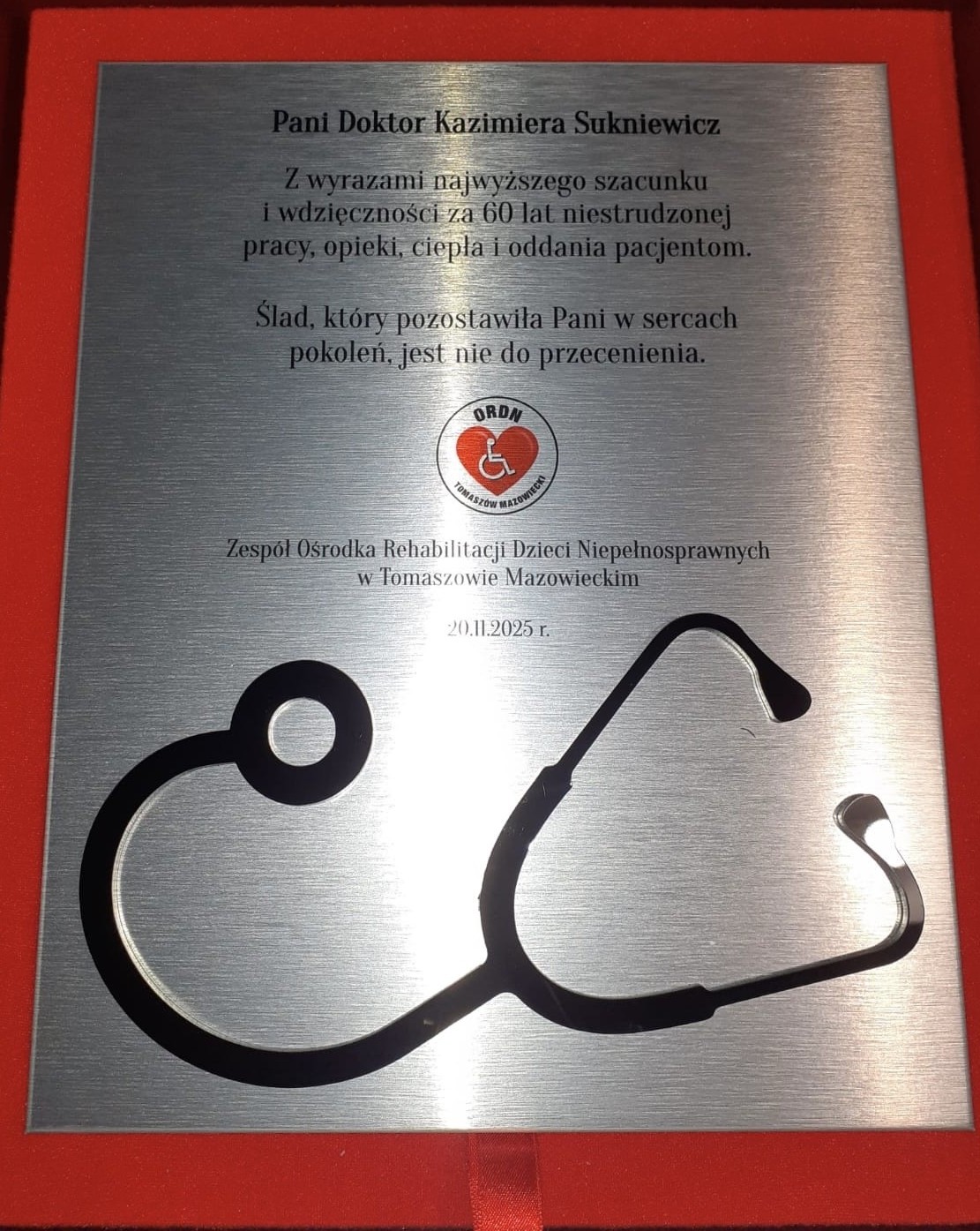 20 listopada 2025 roku w uroczystości pożegnalnej uczczono dr Kazimierę Sukniewicz — lekarza rehabilitacji, która przez 60 lat towarzyszyła tysiącom dzieci i rodzin. Jej cierpliwość, empatia i profesjonalizm zostawiają niepoliczalne dziedzictwo w sercach pacjentów i młodszych terapeutów.